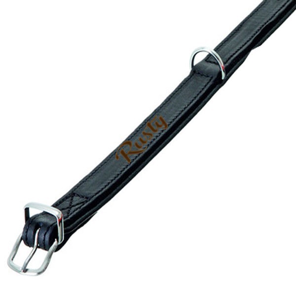 L'élégance et la resistance sont les deux atouts principaux de ce collier à personnaliser en cuir noir avec coutures apparentes.Il sera unique avec le prénom de votre chien.