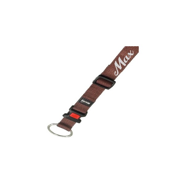 Collier nylon marron avec fermeture en clip ultra résistante.