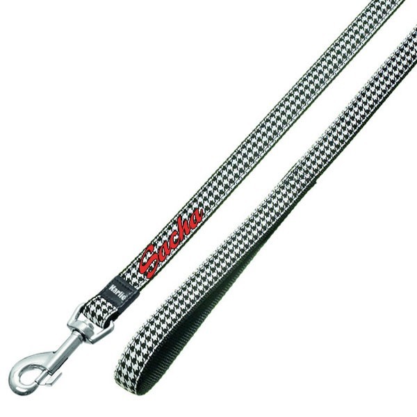 En nylon très résistant, profitez de la personnalisation gratuite qui donnera à cette laisse noire et blanche pour chien un coté fun, original et rendra cet accessoire de ses promenades unique ! Il suffit d'indiquer le prénom de votre chien.