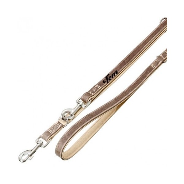 Cette laisse en cuir gris personnalisée. Faite de cuir graissé, elle sera parfaitement adaptée à vos besoin pour l'éducation de votre chien et confortable grâce à une "sous-couche" au cuir souple.