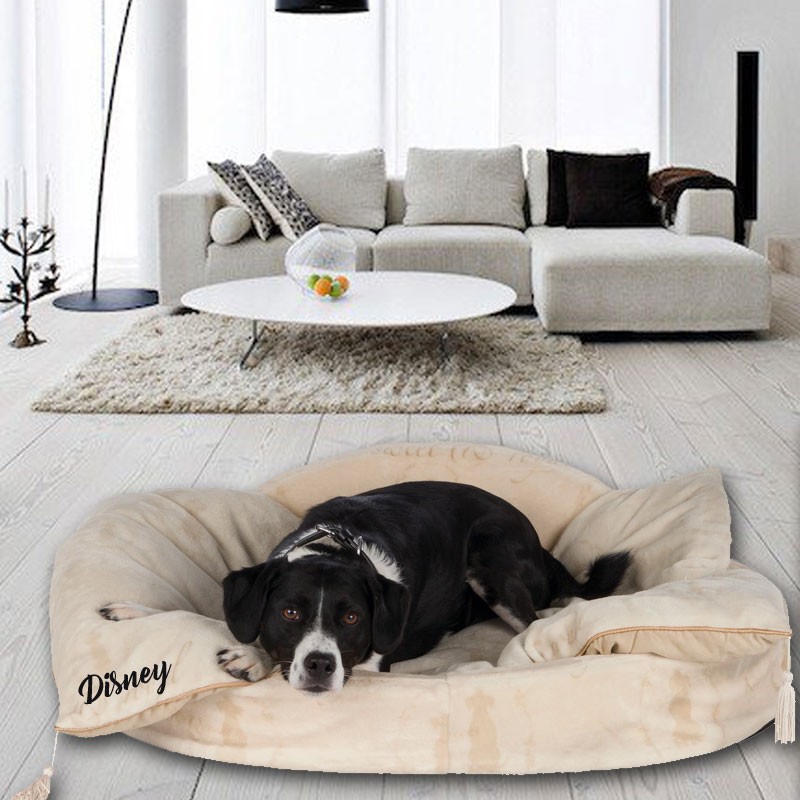 Lit pour chien King of Dog disponible en différentes tailles, personnalisé avec le prénom de votre chien.