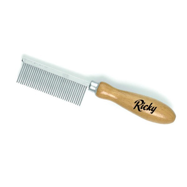 Peigne fin pour chien personnalisé sur le manche en bois vernis.